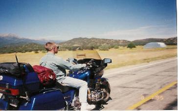 My brother riding what he thought was the 'ultimate tour bike'. He finally came to his senses & realized he was much too young to be riding a Goldwing and switched to a BMW. He has also realized he is much too young to die and has began wearing a helmet on a regular basis.